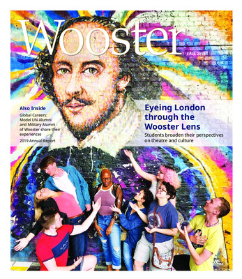 The College of Wooster prepares graduates to serve their global community. Hear from Military Alumni of Wooster and Model UN Alumni about their experiences, and learn about the group of current students who traveled to London this summer to study theatre and culture. This issue also includes the 2019 Annual Report, a look inside the office of Pam Frese, professor of sociology and anthropology, and alumni answers to the prompt: “What is your favorite spot on campus?”